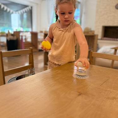 Copiii învață prin activități practice și explorare, folosind obiecte reale și experiențe naturale. La noi copiii chiar spală vase, șterg praful, plantează legume sau udă florile.